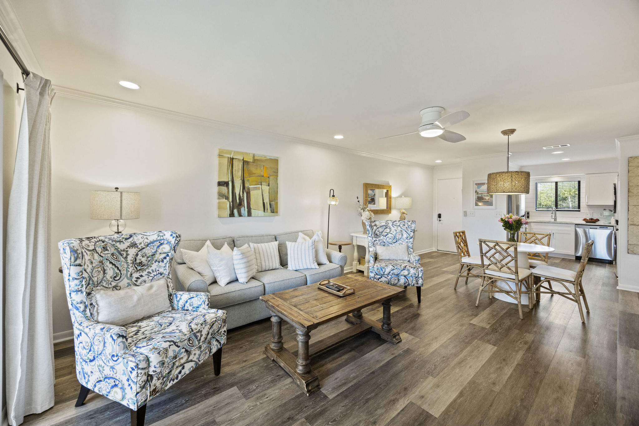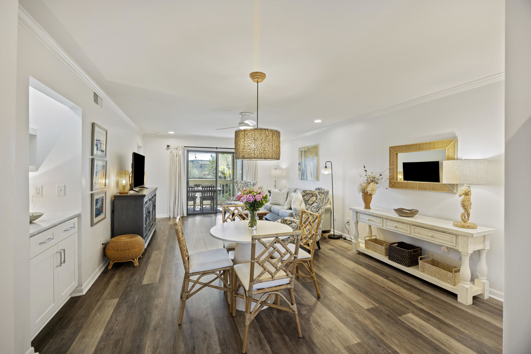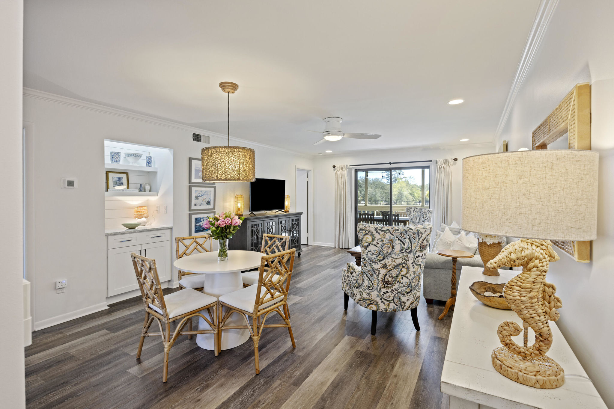 Welcome to 2063 Longbend Drive, a beautifully renovated and fully furnished villa on Seabrook Island that blends easy living with resort-style amenities. Whether you're seeking a low-maintenance primary residence, vacation getaway, or income-producing rental, this 2-bedroom, 2-bathroom property is the perfect coastal retreat.Nestled within the Marsh Walk Villas, this turnkey… Read Morehome enjoys a prime location adjacent to the tennis courts and community pool, and is just minutes from the equestrian center, Lake House fitness complex, and Seabrook Island's private beaches. Residents also enjoy exclusive access to club amenities, including indoor and outdoor pools, fitness facilities, and more.Inside, the villa offers a thoughtful open floor plan with two porches and modern coastal charm. Renovated in 2022, the interior features laminate flooring throughout (no carpet!), shiplap accents, and updated lighting and ceiling fans. The kitchen boasts new cabinetry, Cambria quartz countertops, and an undermount sinkperfect for cooking or entertaining. The primary suite includes direct access to a screened-in porch overlooking the tennis courts, plus an updated en suite bathroom with a 5-foot tiled shower and glass door. The guest bedroom features its own access to a private open-air porch, ideal for enjoying morning coffee or sea breezes. The screened porch is large enough for both dining and seating, with screening extended below the flooring for added comfort and functionality. It's the perfect spot to relax after a day at the beach or exploring the island's scenic trails. Additionally, there is covered, assigned parking under the unit that can hold 2-3 cars, bikes and a golf cart. HOA covers: Exterior insurance Marsh Walk pool maintenance Exterior upkeep (including irrigation, pine straw, pressure washing) Pest control Key Features: 2 Bedrooms | 2 Bathrooms | 2 Porches Fully Furnished Renovated in 2022 with Laminate Flooring & Shiplap Accents Updated Kitchen with Quartz Counters & Stainless Undermount Sink Screened Porch Overlooking Tennis Courts Access to Seabrook Island Club Amenities Ideal for Primary Home, Vacation Rental, or Investment Property Come experience the best of Seabrook Island livingwhere natural beauty, recreational amenities, and a welcoming community come together. Schedule your showing today! Use preferred lender to buy this home and receive an incentive towards your closing costs!Read Less