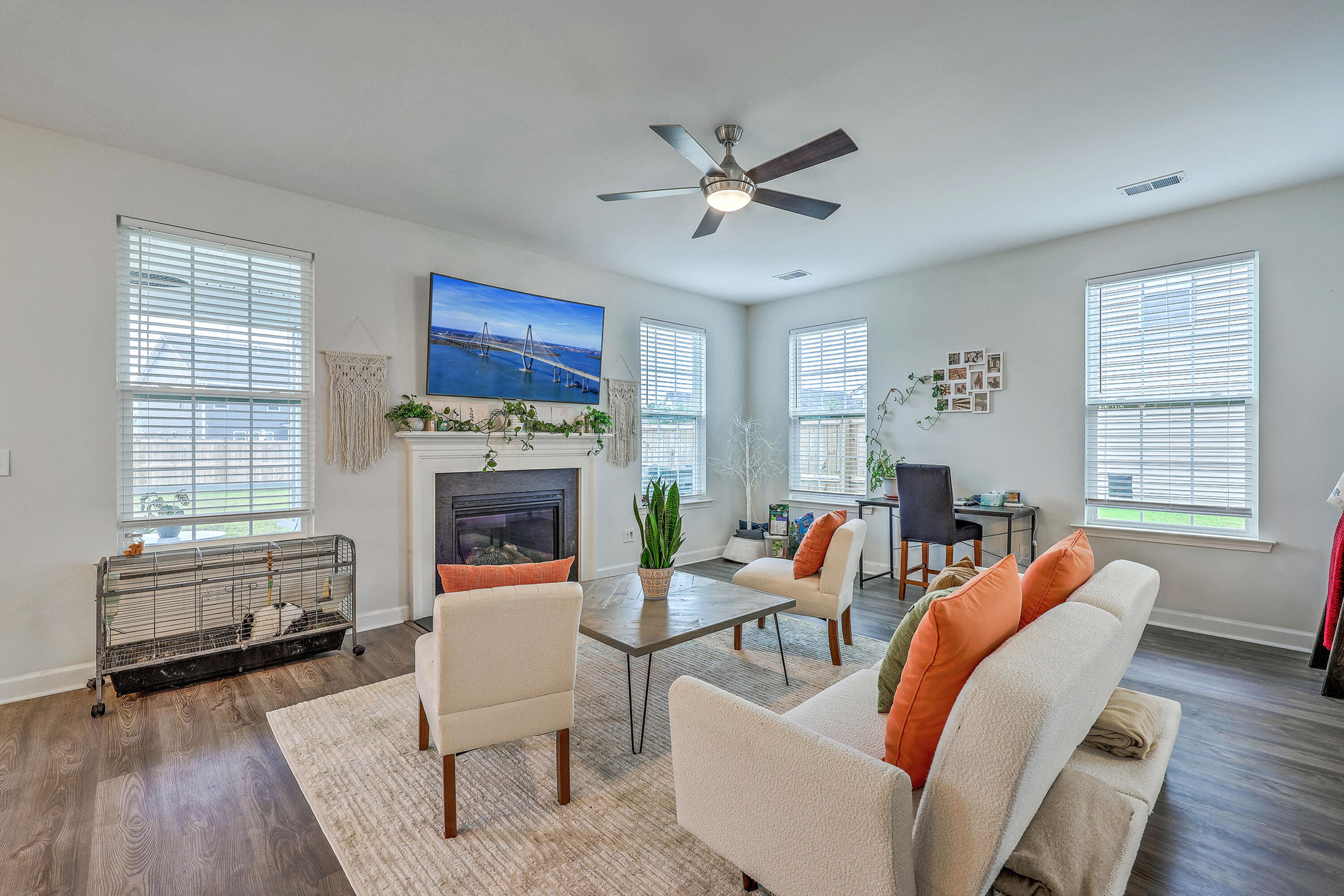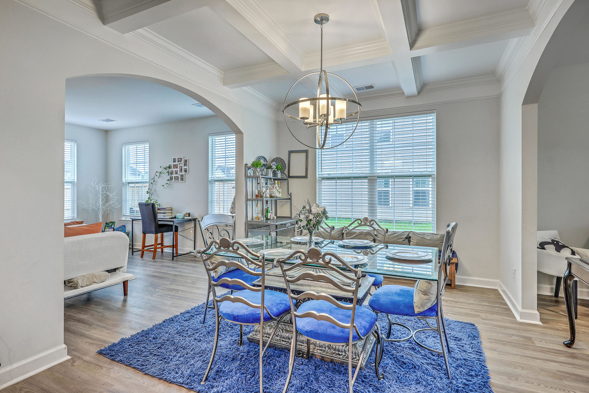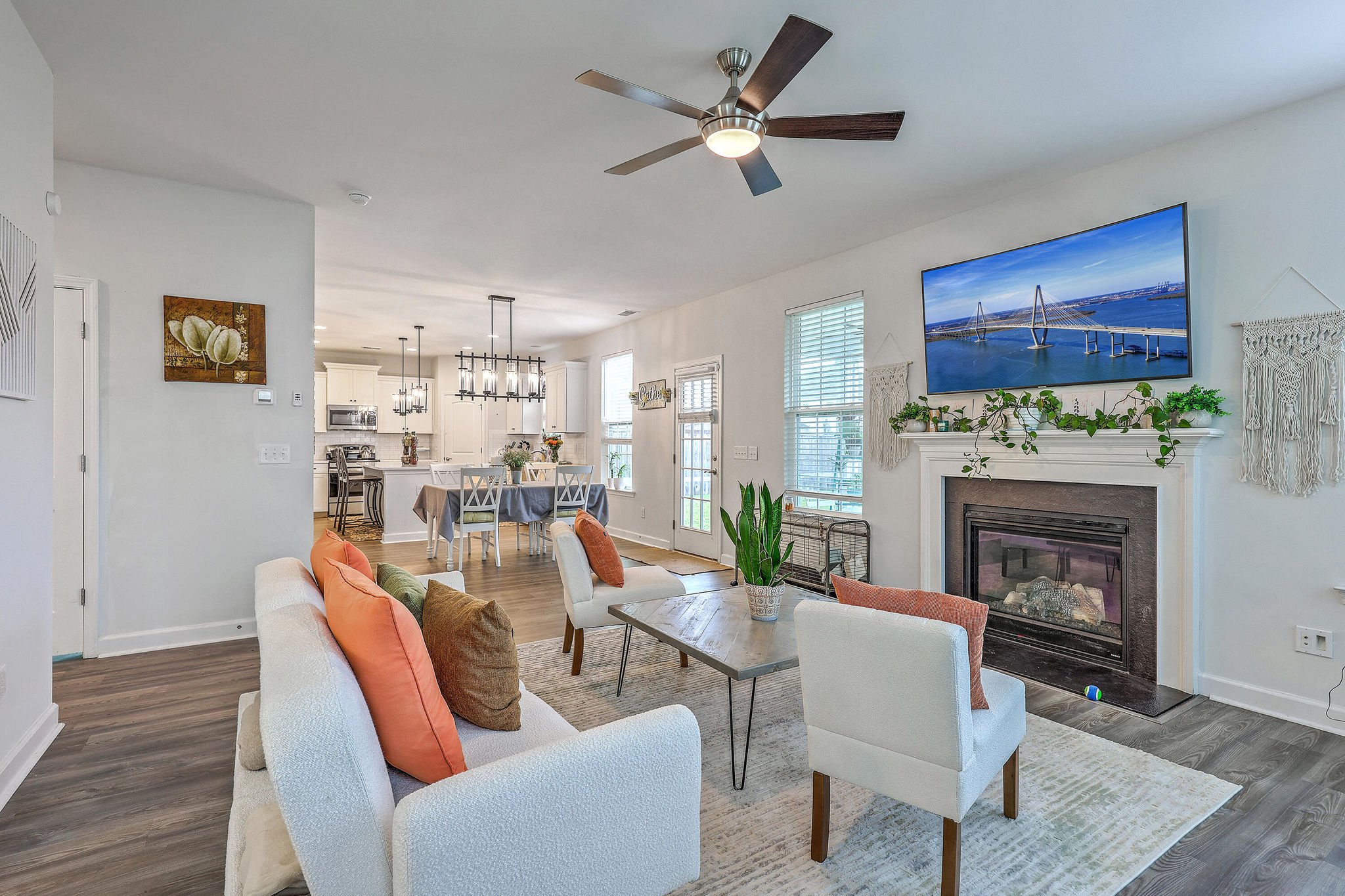 Welcome to this stunning 4-bedroom, 3.5-bath home located in the highly desirable Cane Bay Plantation community. With double front porches, a covered rear porch, and beautiful interior craftsmanship, this home offers the perfect blend of style, space, and comfort for modern Lowcountry living.Step through the front doors and be greeted… Read Moreby rich 6-inch Chestnut LVP flooring that flows throughout the main living areas. The layout is both elegant and functional, featuring a formal living room that opens seamlessly into the dining room and family room, all accented by classic archways and a gorgeous coffered ceiling in the dining area--ideal for entertaining.The heart of the home is the spacious kitchen, which boasts white cabinetry, Quartz countertops, a large center island, and plenty of storageperfect for cooking, hosting, and everyday living. Upstairs, you'll find four generously sized bedrooms and an expansive loft that provides a flexible space for a media room, home office, or playroom. The primary suite is a true retreat with a tray ceiling, dual walk-in closets, sitting area, and a spa-like en suite bath featuring a garden tub and tile-surround walk-in shower. Step outside to enjoy your screened-in back porch overlooking a spacious, fully fenced backyardgreat for relaxing, grilling, or enjoying outdoor time with family and pets. Neighborhood amenities include a community pool, covered event pavilion, playground, and miles of scenic walking and jogging trails, making it easy to enjoy an active and social lifestyle. Key Features: 4 Bedrooms | 3.5 Bathrooms | Spacious Loft Formal Living & Dining Rooms with Designer Details Gourmet Kitchen with Quartz Counters & Large Island Screened-in Porch & Fully Fenced Backyard Double Front Porches + Covered Rear Porch Community Pool, Event Pavilion, Playground & Trails Don't miss the opportunity to own this beautifully designed home in one of Cane Bay's most popular neighborhoods. Schedule your showing today! Use preferred lender to buy this home and receive an incentive towards your closing costs!Read Less