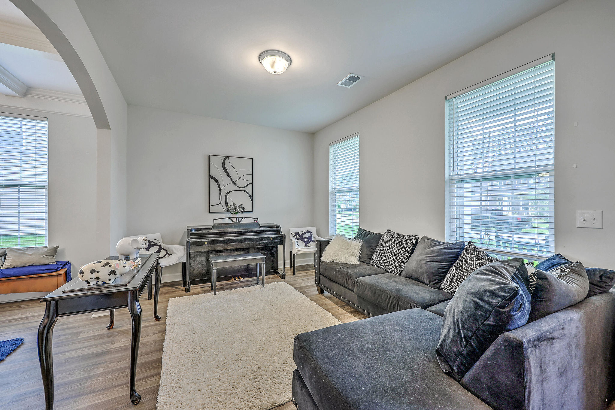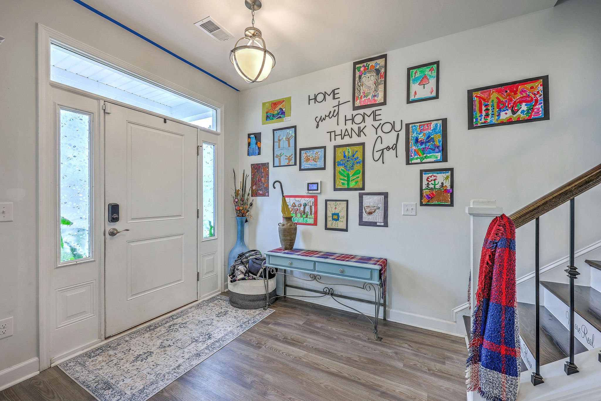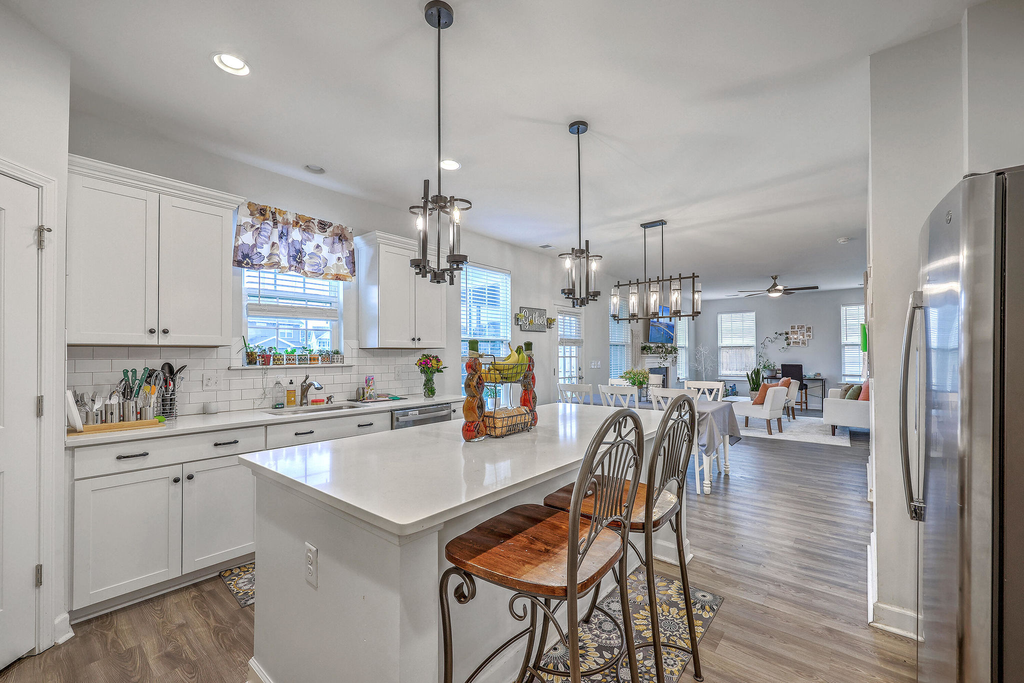 Welcome to this stunning 4-bedroom, 3.5-bath home located in the highly desirable Cane Bay Plantation community. With double front porches, a covered rear porch, and beautiful interior craftsmanship, this home offers the perfect blend of style, space, and comfort for modern Lowcountry living.Step through the front doors and be greeted… Read Moreby rich 6-inch Chestnut LVP flooring that flows throughout the main living areas. The layout is both elegant and functional, featuring a formal living room that opens seamlessly into the dining room and family room, all accented by classic archways and a gorgeous coffered ceiling in the dining area--ideal for entertaining.The heart of the home is the spacious kitchen, which boasts white cabinetry, Quartz countertops, a large center island, and plenty of storageperfect for cooking, hosting, and everyday living. Upstairs, you'll find four generously sized bedrooms and an expansive loft that provides a flexible space for a media room, home office, or playroom. The primary suite is a true retreat with a tray ceiling, dual walk-in closets, sitting area, and a spa-like en suite bath featuring a garden tub and tile-surround walk-in shower. Step outside to enjoy your screened-in back porch overlooking a spacious, fully fenced backyardgreat for relaxing, grilling, or enjoying outdoor time with family and pets. Neighborhood amenities include a community pool, covered event pavilion, playground, and miles of scenic walking and jogging trails, making it easy to enjoy an active and social lifestyle. Key Features: 4 Bedrooms | 3.5 Bathrooms | Spacious Loft Formal Living & Dining Rooms with Designer Details Gourmet Kitchen with Quartz Counters & Large Island Screened-in Porch & Fully Fenced Backyard Double Front Porches + Covered Rear Porch Community Pool, Event Pavilion, Playground & Trails Don't miss the opportunity to own this beautifully designed home in one of Cane Bay's most popular neighborhoods. Schedule your showing today! Use preferred lender to buy this home and receive an incentive towards your closing costs!Read Less