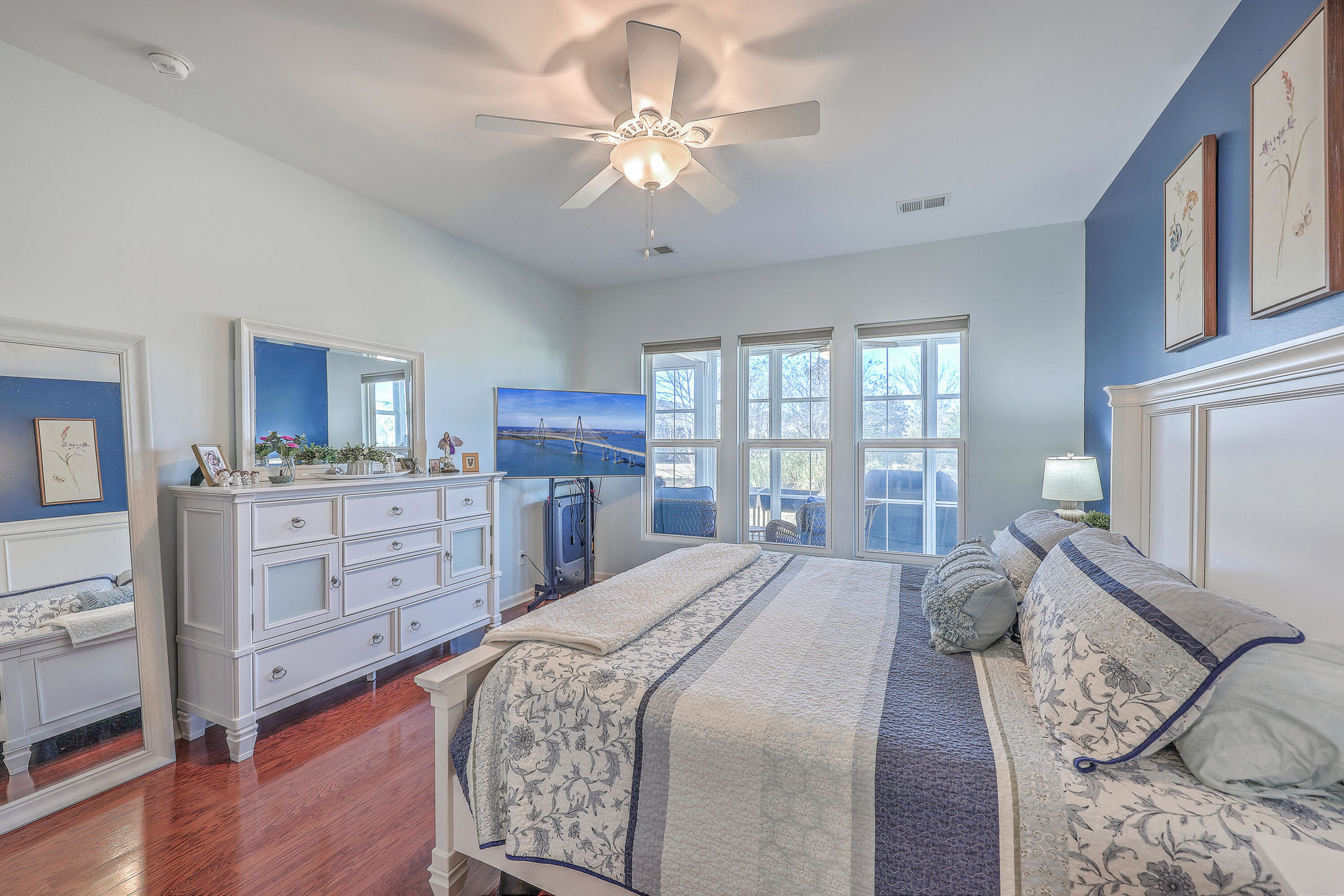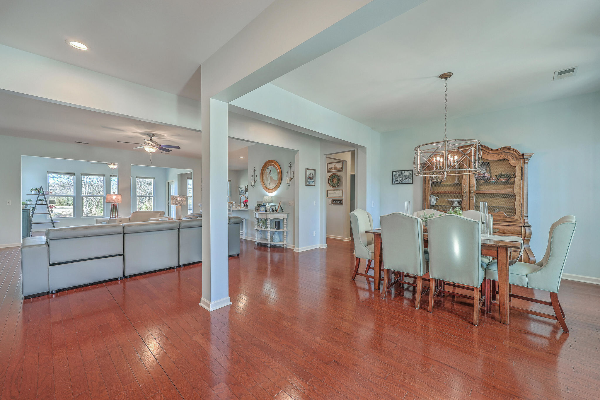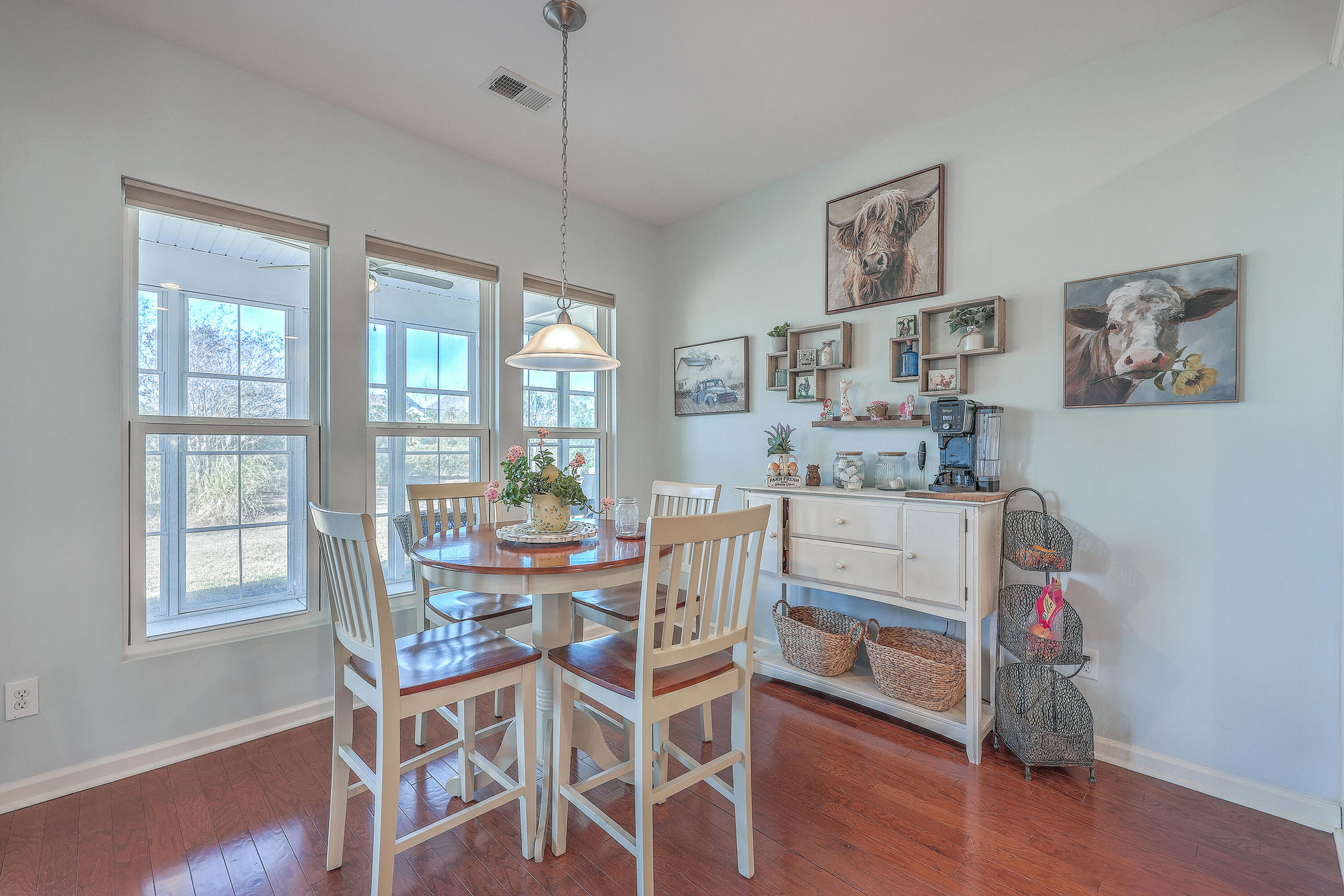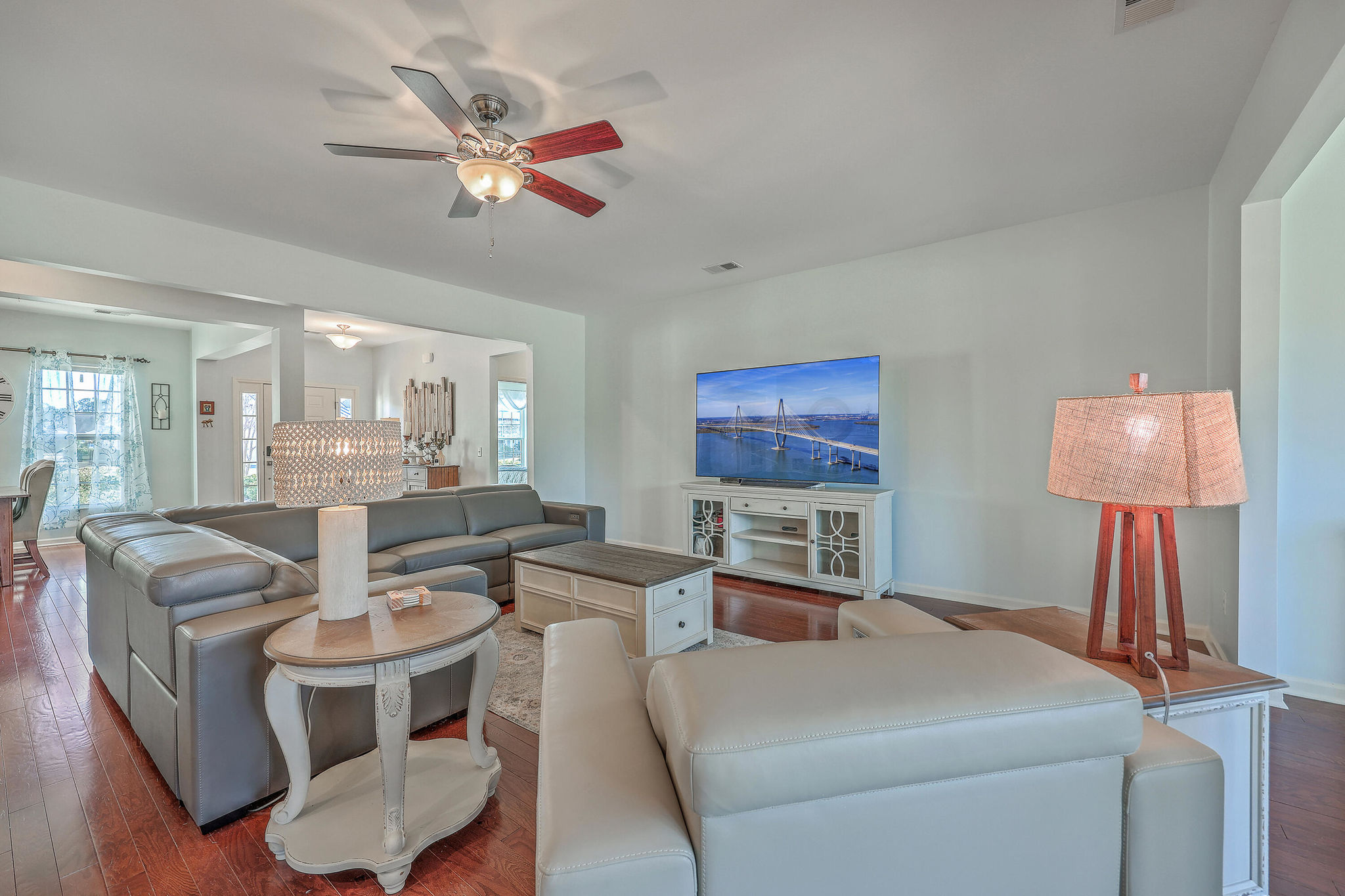 A grand full front porch with elegant columns and stone detailing welcomes you to this beautiful home. Step inside, and you're immediately greeted by rich hardwood floors that flow seamlessly from the foyer into the great room, dining room, kitchen, breakfast nook and hallways, creating a warm and inviting atmosphere… Read Morethroughout.The well-appointed kitchen overlooks the spacious great room and is designed for both functionality and style.It features upgraded quartz countertops, a stylish tile backsplash, staggered cabinetry with crown molding, pull-out shelving in the lower cabinets, recessed can lighting, and high-end stainless steel appliances, including a built-in wall oven, microwave, and a 5-burner gas cooktop. At the back of the home, a light-filled sunroom offers the perfect space for relaxation. Just beyond, an oversized screened-in lanai with vinyl windows extends your living space year-round, making it ideal for entertaining or enjoying peaceful moments with friends and family. The backyard is a private retreat, with lush landscaping creating a serene and tranquil setting. Thanks to the home's thoughtful positioning, you'll enjoy plenty of privacy while savoring the beauty of your surroundings. Inside, the spacious primary suite is a true sanctuary, complete with a luxurious bath featuring granite countertops, tiled flooring, a double vanity, a walk-in shower, and a large walk-in closet. On the opposite side of the home, the second and third bedrooms are thoughtfully separated to offer guests maximum privacy. The second bedroom is versatile enough to serve as both a bedroom and an office/den, or even a second primary suite. A well-appointed guest bathroom with granite countertops is conveniently located between the second and third bedrooms. This is a very active 55+ community. Amenities include a large indoor pool and outdoor pool, a full exercise gym, tennis courts, a playground, and plenty of walking/jogging trails. Located in Del Webb at Cane Bay Plantation, this home offers the perfect blend of comfort, privacy, and convenience. Don't miss your chance to tour this incredible propertybook your showing today! Use preferred lender to buy this home and receive an incentive towards your closing costs!Read Less